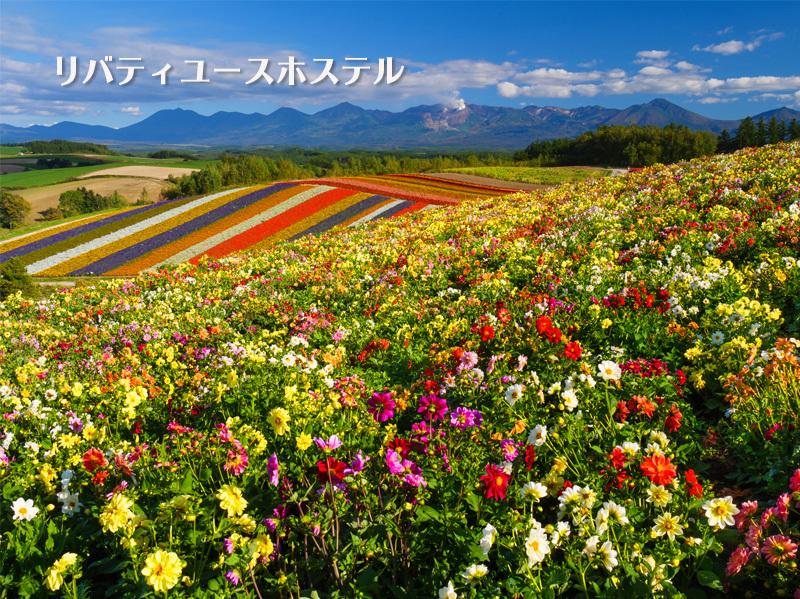 美馬牛リバティ ユースホステルはその美馬牛駅から徒歩1分。思いっきりリフレッシュ体験ゾーンを満喫できます。(写真:虹色に花咲く四季彩の丘・美馬牛新星)